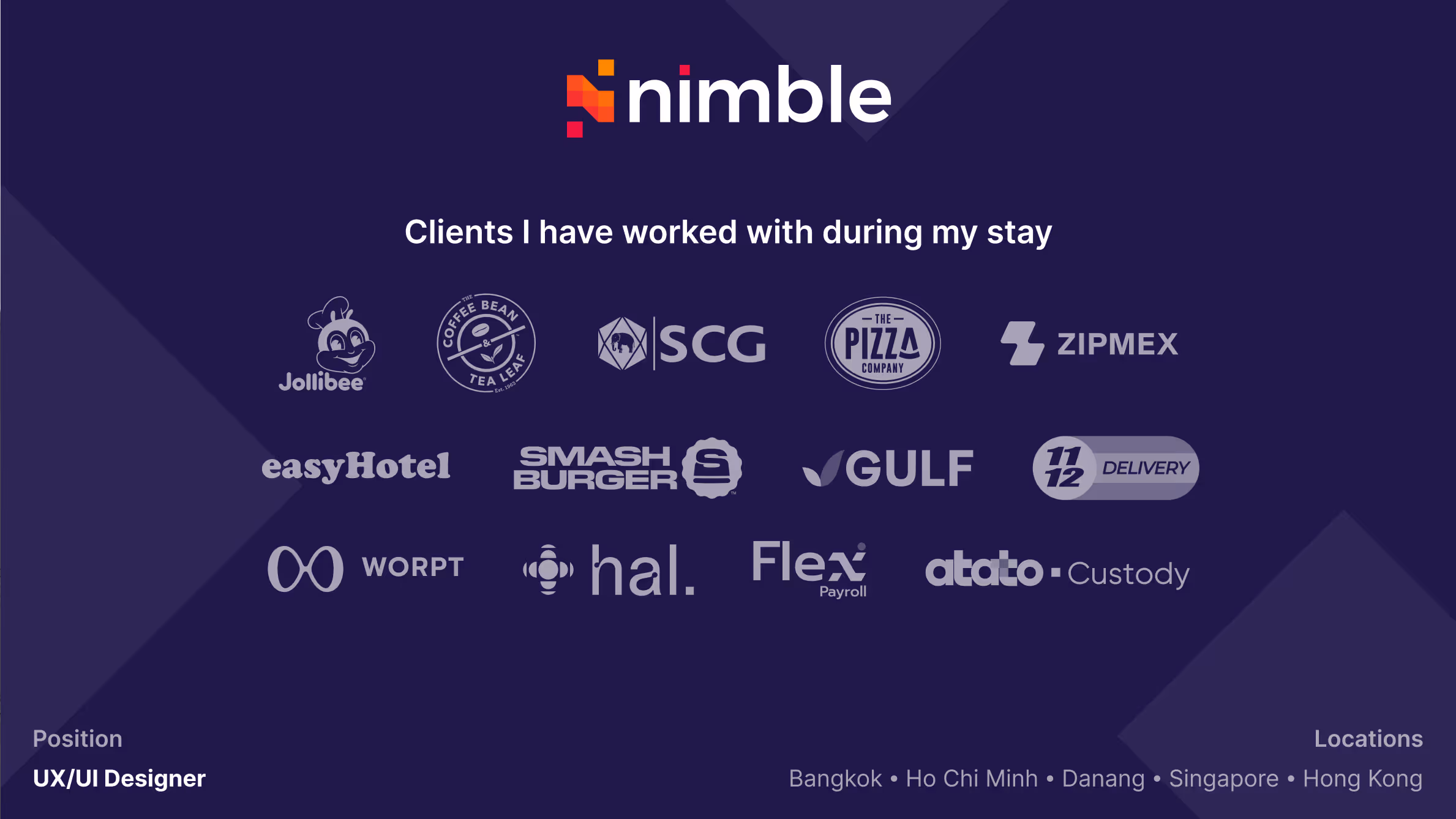 UX/UI Designer at an international software agency — owning design end-to-end across web and mobile products for global clients including Jollibee, EasyHotel, and Coffee Bean & Tea Leaf.