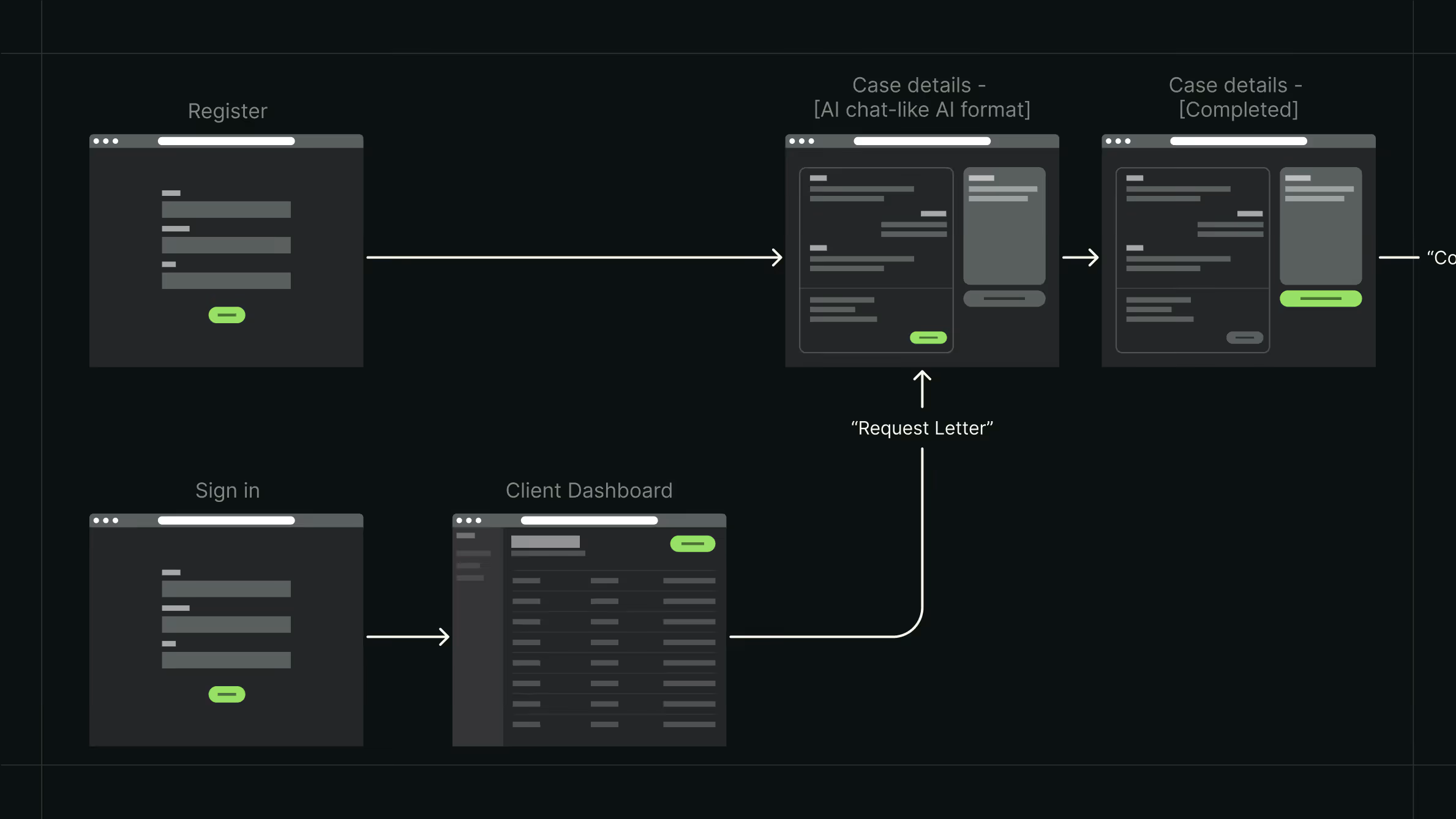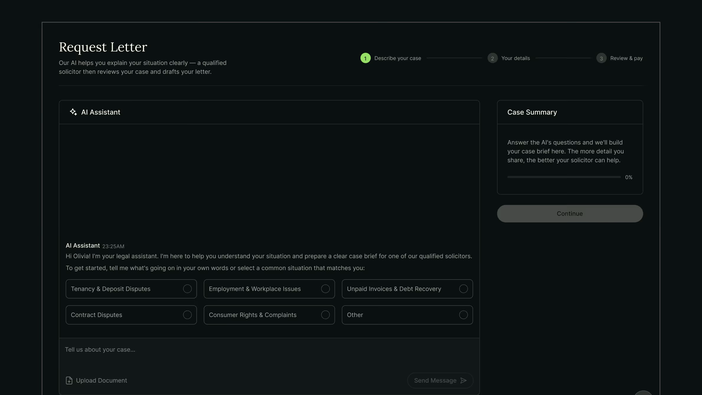 End-to-end design of an AI-powered legal platform, from research, branding and testing through to high-fidelity UI.