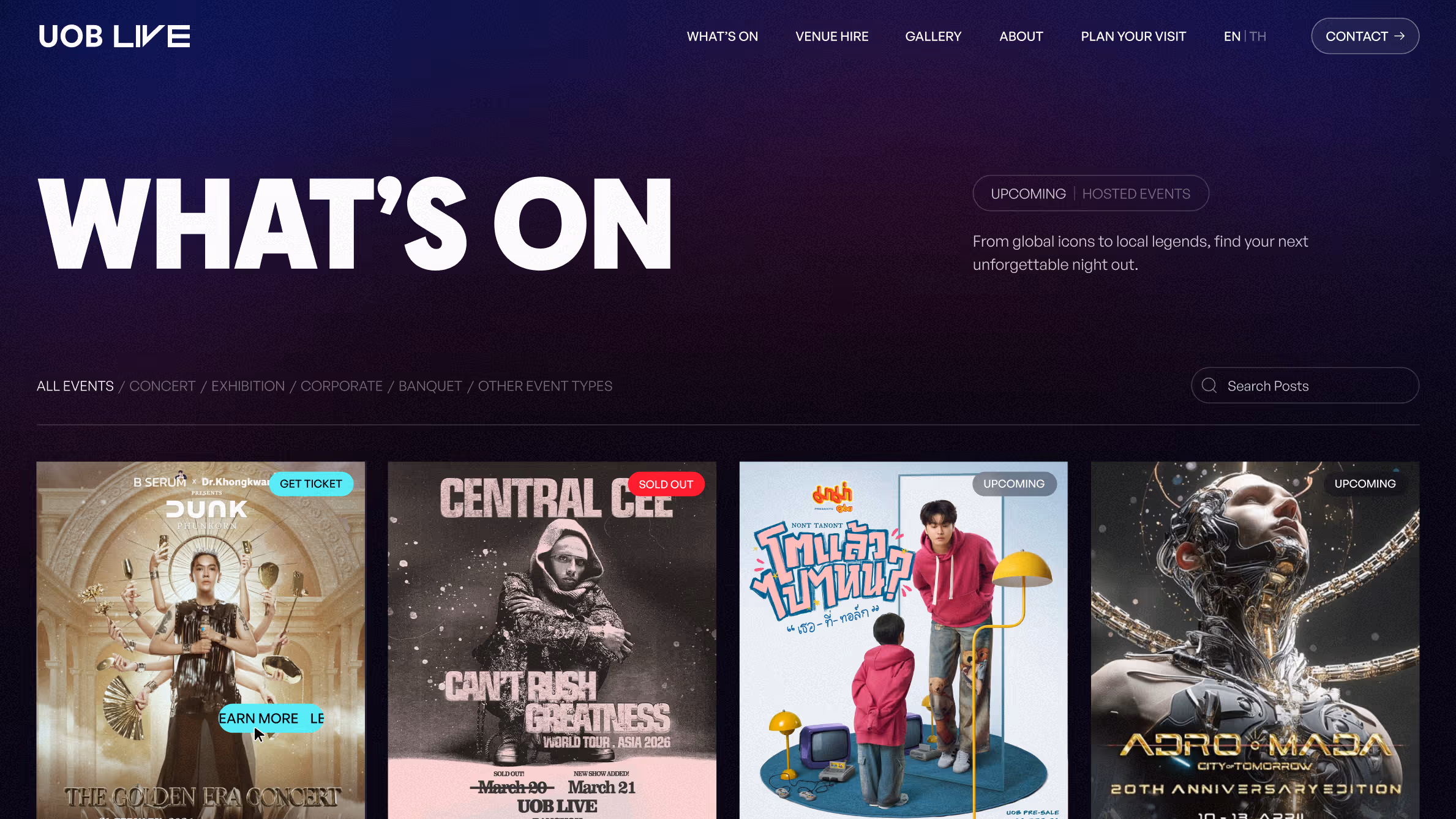 Southeast Asia's premier entertainment venue, sponsored by UOB Bank. Delivered an interactive, on-brand Webflow website. From UX/UI design & usability testing through to build and website launch.
