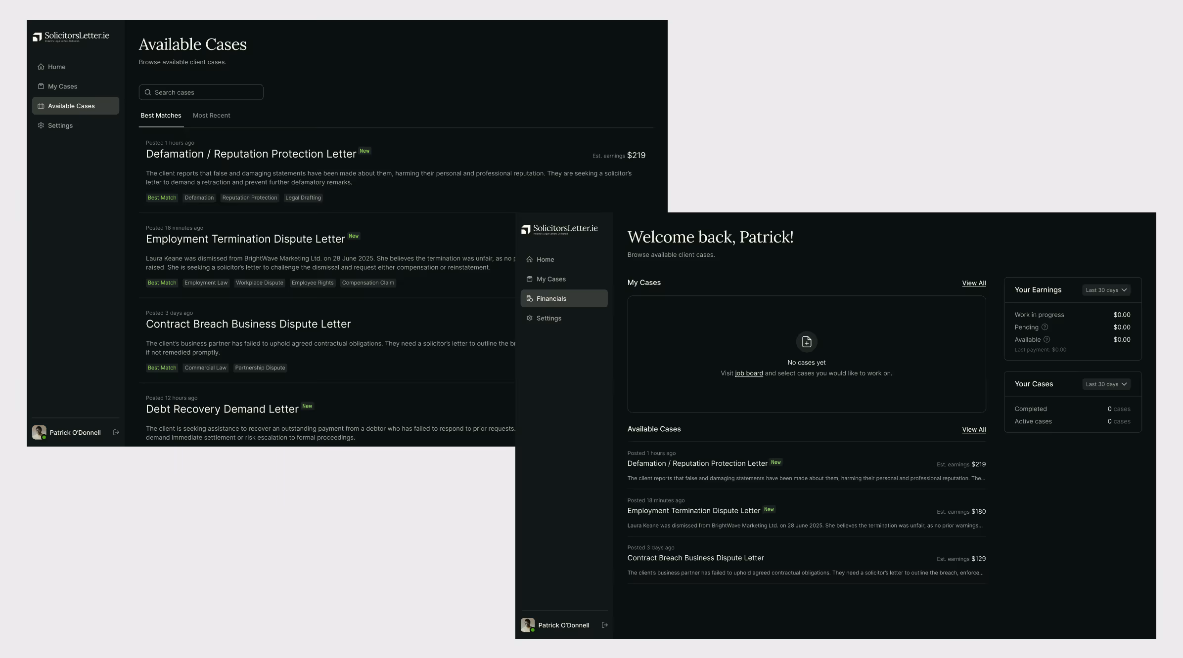 - Expanded solicitor profiles: specialization, case history, and client reviews to strengthen platform credibility
